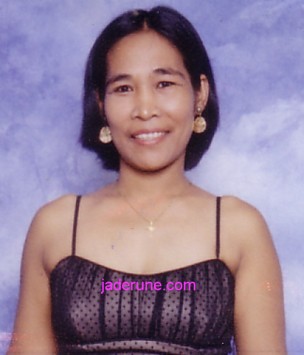 10 . Ailene, Born 3-25-1981, Height 5'2", Weight 120 lbs. 55 kilos, Catholic, never married, 3 children: 1 boy, 3 girls. Education: some High School. Work: sales lady. Describes herself: long hair, black beauty, simple beauty, smiling, chubby, understanding, sweet. She does not smoke or drink. Likes: cooking. Dislikes: smoking and drinking alcohol. Hobbies: singing. Seeking a good man who is about 35-50 years old who is honest and understanding. No preferences as to religion, smoking or drinking but as state about does not like smoking or drinking. Tacloban City