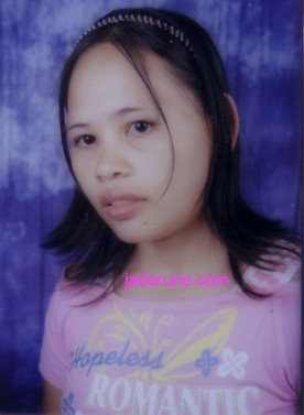 6. Rolibeth Cuyar, Born 3-3-1982, Height 5'4", Weight 99 lbs., Catholic, separated, has 5 children: all girls. Education: some High School. Describes herself: tall, black hair, two dimples on my face, slim. She does not smoke, does drink on occasion. Likes: good man who has a stable job, is loving, caring, most of all understanding and kind. Dislikes: bad attitude, takes drugs, liar. Hobbies: singing, dancing, cooking. Seeking a good man who is about 45-65 years old and is interested in me, loves me even though I have 5 daughters and is interested to marry me. No preference as to religion, occasional smoking or drinking okay. Cebu. |