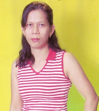10 . Mercita Bongcac, Born 6-21-1972, Height 5'2", Weight 110 lbs., Catholic, never married, no children. Education: College. Work: chef/ cook. Describes herself: I'm a good person, simple, honest, virtuous, faithful, loyal, very responsible, loving, caring, a good cook and marriage minded. I'm single, never married, still waiting for God's will for me in marriage. I hope I can find a man with a good heart. I don't have any tattoos or bad habits and I live a simple way of life. I am a very hard working woman. If you need my heart, I'm here to give it to you for the rest of my life. If you need a shoulder to cry on, I have two and will give them to you for the rest of my life. She does not smoke or drink. Likes: honesty, loyalty, faithful and friendly. Dislikes: dishonest, lazy, irresponsible and unfaithful. Hobbies: cooking, dancing, singing and outdoor activities. Seeking a good man who is about 30-60 years old and is serious looking for a wife. A man that will become my future husband who is honest, faithful, loyal, responsible, loving, caring and a gentleman. I hope you are that one. I hope we can cross our roads that can lead to a good a destiny forever. I'm not looking for appearance or model type of guy as long as you have a good and positive attitude all the time, that is most important to me. I'm here waiting for you. Davao City