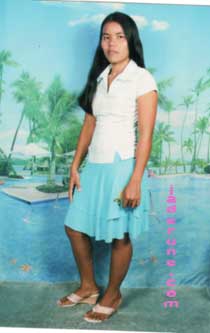 Melanie R. Montajes, Born February 27, 1982; Height 4'11"; Weight 36 kilos; Roman Catholic; single, never married, no children; She describes herself as having wide shoulders and long hair. She is understanding, caring, generous by nature, kind-hearted, loving, man-fearing, and marriage-minded. She does not smoke or drink. Her hobbies are singing, reading, and cooking. She likes those who are friendly, helpful, kind, understanding, marriage-minded, and God-fearing. She dislikes drunkards and chain-smokers. She wishes to meet a man who is between the ages of 40 to 60 years old. She wants to meet a man who is marriage-minded, and most of all, lovable, understanding, caring, and can accept her for who she is. She prefers a Catholic or a Christian. She prefers a man who does not smoke, but an occasional drinker is acceptable. Her comment is, "I hope I can meet a man here to be my mate....I am waiting." Leyte