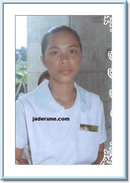 Ivy A. Nastor, Born: 11-5-1984, Height: 5'5", Weight: 45 kilos; never married, no children. Education: Nursing. Work: Still studying 3rd yr college. Describes herself: Simple human being, simple ambition in life, loving, caring, understanding. Likes: I'll tell you later. Dislikes: Smoker, drinking, selfish, arrogant, and liar. I'm looking for a soul mate who can accept me for what I am and comfort me until the rest of my life. I'm seeking a good man who is about 40 to 65 yrs old who is responsible, honest and have a good attitude. No preferences as to religion, prefers nonsmoker and non drinker, though occasional light use is okay with me.(Manila)